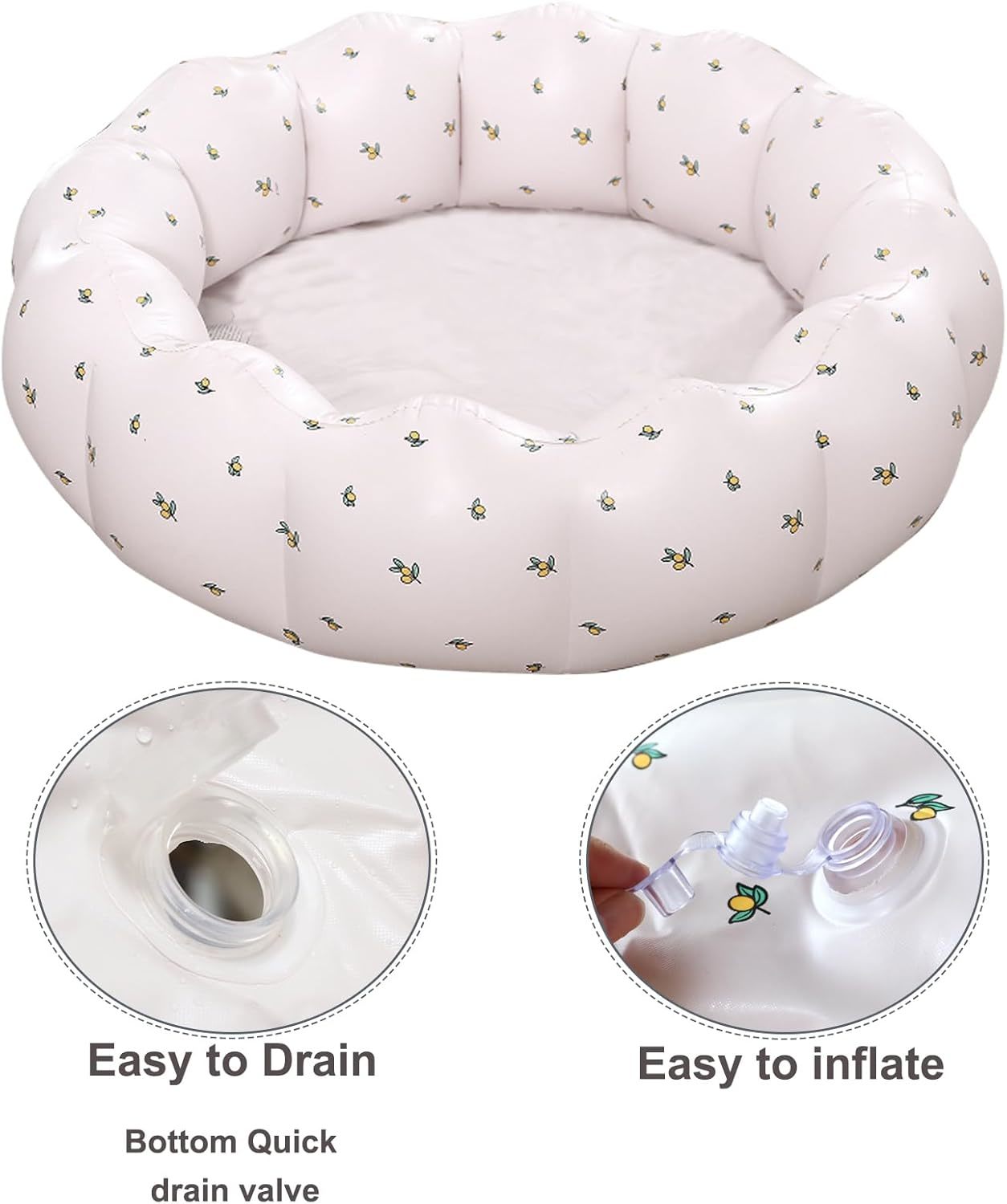 White Lemon Print Inflatable Kiddie Pool – Summer Paddling Pool for Kids | Soft-Sided, Leak-Proof Garden/Backyard Water Play Pool for Toddlers |
