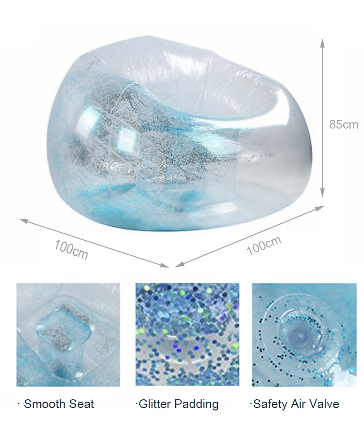 Crafted from high-transparency, odor-free PVC (0.3mm thick), this inflatable sofa brings a futuristic "floating" vibe to your space. It’s lightweight (2kg deflated, foldable to 20×30cm) yet sturdy—supports up to 150kg, perfect for living rooms, balconies, parties, or photoshoots.